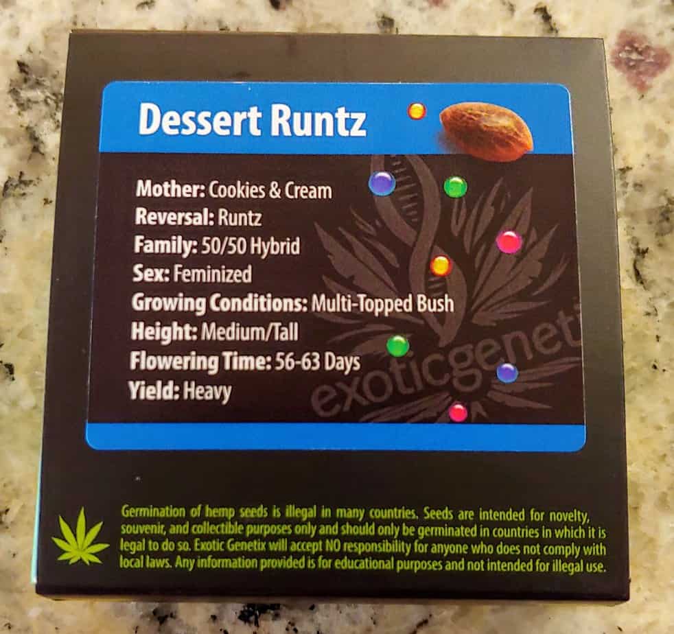 Exotic Genetix Dessert Runtz Cookies & Cream x Runtz 6 Pack Fem Seeds We encourage all customers to follow the laws set forth by their Country, State / Province and local municipalities. Any Seeds sold will be considered sold FOR NOVELTY PURPOSES ONLY! We take no responsibility if they are used in any fashion that can be considered illicit or illegal. All sales are final.